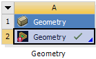 If a geometry cell contains a reference to a file that is not present, a small red exclamation icon will appear next to it, indicating that the file is missing.