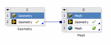 Mechanical (Model cell): The geometry cell can receive data from any upstream model cell in the form of a PMDB file. The geometry may be further edited in either DesignModeler or SpaceClaim.