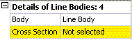 To assign a cross section to a line body, first select the line body in the Tree Outline. In the Details View will appear a Cross Section property. At first, all line bodies will have no cross sections until you assign them. When a line body has no cross section assigned to it, the Cross Section property will appear in yellow as "Not Selected." Next select the cross section to be assigned to the selected line body from the drop-down menu available in the Details View. The drop-down menu will display all the cross section objects added to the Tree Outline.