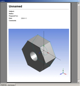 A tab at the lower left corner of the Graphics Window shows that, by default, the system is in Model View. To the right is the tab. Clicking it allows you to print the current view of your model or save a screen shot.