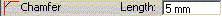 You can draw a chamfer for intersecting and non-intersecting edges. Select an endpoint connecting two edges, or edges to create a chamfer line "breaking" the corner between them. The length specified is the distance from the intersection location of the edges to each of the endpoints of the chamfer line.