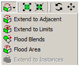 Contents Selection | Selection Toolbar | Print page Extend SelectionUse the Extend Selection button to access the following options:Extend to AdjacentExtend to LimitsFlood BlendsFlood AreaExtend to InstancesOther Selection Toolbar choices:New SelectionSelect ModeSelection Filter: PointsSelection Filter: EdgesSelection Filter: FacesSelection Filter: BodiesExpand/Shrink Face Selection « Selection Filter: Surface Bodies (3D) Extend to Adjacent »