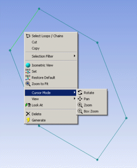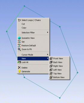 You can access most of the viewing options and selection filters described below by clicking on the right mouse button while in the sketching or modeling mode.