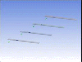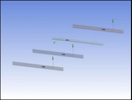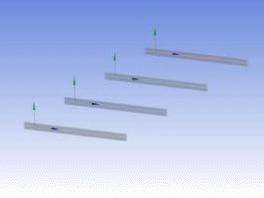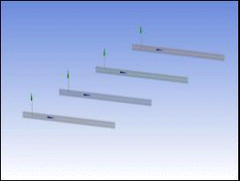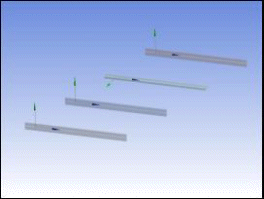 The body on the left is patterned to produce the bodies on the right. The three new bodies inherit the same cross section and alignment as the original body.