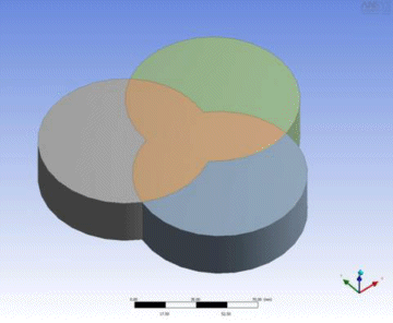 An example of Union of All Intersections with Preserve Tool Bodies option as Sliced: