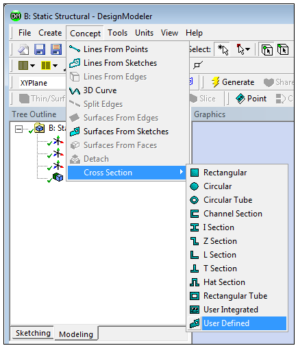 To create a User Defined cross section, select Cross Section->User Defined in the Concept Menu.