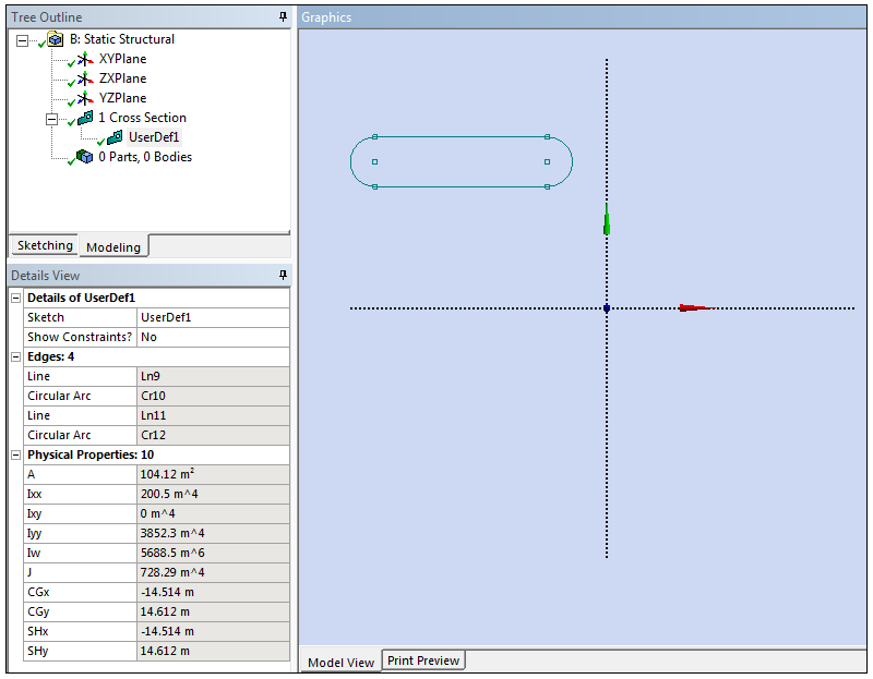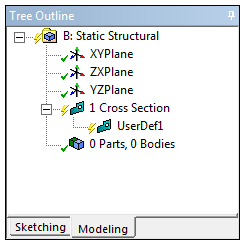A cross section object with an empty sketch will be added in the Tree Outline under Cross Section.