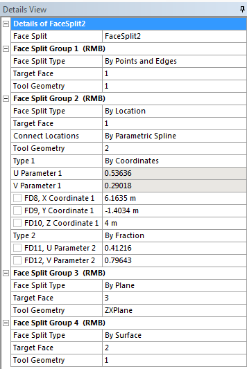 The Tool Geometry field in the Details View will display the number of line segments. Right-click in the Details View to Add New Face Split Group (Face Split Group 2).