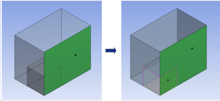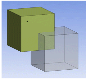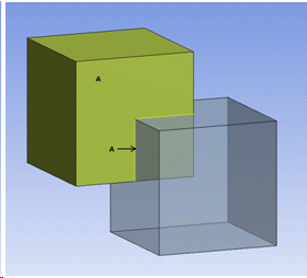 Two boxes are present in a single part as frozen bodies as shown below. Named Selection A is created for a single face of the larger box. After Share Topology, Named Selection A tracks the small shared face as well as the larger face, which are derived or created from the larger selected parent face.