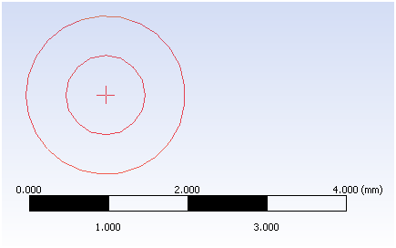 Note that in Edit Selections mode the mouse cursor is enclosed by a pair of concentric circles whose diameters are equal to the Minimum and Maximum Limit provided. This enables you to visualize the limits provided in the model workspace (Graphics Window). The image shows the cursor change when Minimum and Maximum limits provided are 1 and 2 millimeters respectively.
