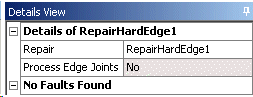 Note: If faults are not found with the given criteria, No Faults Found appears in the Details View of the Repair Feature. This feature if generated will have No Faults Found warning message. The Details View of one such repair feature after Generate is shown below.