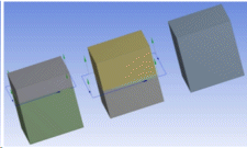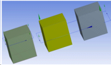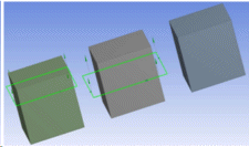 The following figures demonstrate the results after slicing, by specifying the target bodies. Even though the selected loop of edges are able to slice two bodies, they will slice only the selected target body (here the middle body is the target).