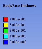 The Thickness Legend allows up to eight unique thicknesses to be colored. If more than eight thicknesses exist, the legend shows a range of nine thicknesses and the corresponding colors.