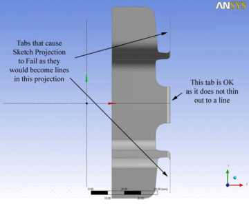 For faces, adjacent faces are treated as a group and projected as though they were a separate surface body. For bodies and face sets, the projection will be the outline of the body, as seen looking perpendicular (normal) from the plane. Interior edges, unless selected separately, will not be projected. While the DesignModeler application attempts to maintain associativity between the outline of the faces or bodies and sketch edges created, there are cases where this is not possible. If the topology of the projection changes so that the number of sketch edges resulting from an edge or face in the outline changes, it will not be possible to maintain proper associativity.
