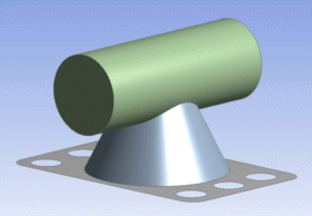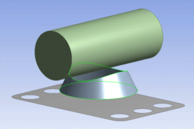 Another example of the Surface Extension feature is shown here. Suppose you wish to extend the surface of the gray cone up to the cylindrical face and down to the planar surface. First, select the edges along the surface to extend: