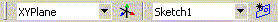 Use the Active Plane/Sketch Toolbar to create a new plane or a new sketch. You can also use it to switch the active plane or active sketch while in the sketching mode. (While in the modeling mode, this is usually done via selection in the feature Tree Outline.)