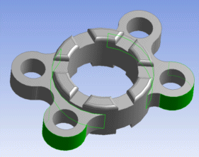 Given a seed face selection and a selection of boundary edges (the current face selection is interpreted as the seed selection; the current edge selection is interpreted as the "boundary" selection), extends the face selection by flooding the bounded area. Multiple, disconnected seed and respective boundary conditions are supported. The face flood covers the case of flooding multiple (disconnected) areas. Then each such area would be defined by one seed face and its respective boundary. If the selection of the boundary edges is incomplete or not closed, then the flood will extend to the whole of the respective body.