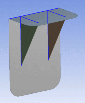 Share Topology: To treat the imprinted edges as shared topology in the Mechanical application, set the Shared Topology option to Yes. Imprinted edges will display an edge joint where the coincident edges are to signify that their edges will be shared. That is, two coincident edges will still exist in Ansys DesignModeler as separate edges, but when the model is attached to the Mechanical application, the edges are merged into one. If Share Topology is set to No, then edges will be imprinted on both surface bodies, but no shared topology information is kept. The default setting is Yes. See the Shared Topology section for more information.