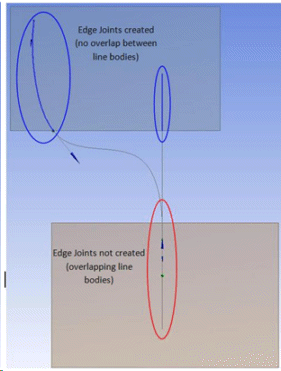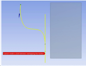 Overlapping line bodies — The Joint feature cannot be used to create a joint when the line bodies overlap or touch one another on a Surface body.