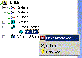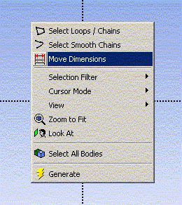 To change a cross section dimension's location, use the right mouse button option, Move Dimensions, available when right-clicking on the cross section in the Tree Outline or when right-clicking in the Graphics Window when viewing a cross section. Ansys DesignModeler will enter a dimension moving state, identical to the tool used to move dimensions in the Dimensions Toolbox in Sketching Mode. When you are done moving dimensions on the cross section, the Move Dimensions state is ended by clicking on another item in the Tree Outline or by clicking the New Selection button.