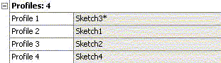 The feature can accept profiles consisting of a single point. A point profile is defined as a sketch that contains exactly one construction point and nothing else or a Named Selection with a single vertex or 3D Point (from Point feature). Point profiles are restricted to either the first and/or last profile in the profile list. Point profiles may not be placed in the middle of the profile list. If both the start and end profiles are point profiles, then at least three profiles are necessary for the feature instead of the usual two and the third profile must be a non-point profile kept in the middle of the sequence. You can tell which profiles in the Details View are point profiles by the asterisk (*) that is placed after them. In the following picture, Sketch3 is a point profile: