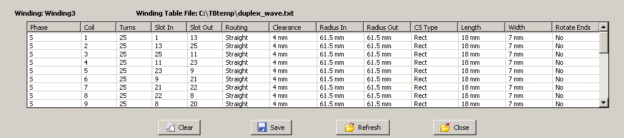 | #Phase | Coil | Turns | SlotIn | SlotOut | Routing | Clearance |