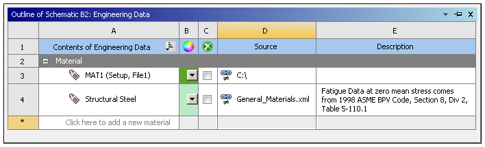 Displays items included by default in Engineering Data when it is created in a new system. This column is only displayed when the selected data source is Favorites. |