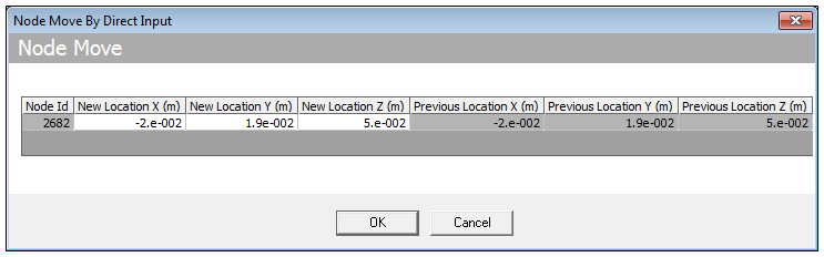 The Node Move object is a child object of Mesh Edit. It is inserted into the tree by selecting the Node Move button on the Mesh Edit toolbar or by selecting the Mesh Edit object, right-clicking, and selecting >.