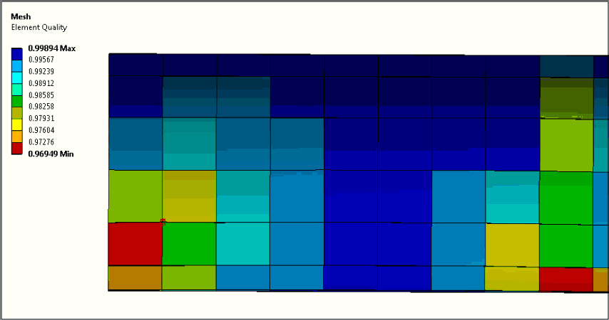 These are annotation options. Selecting the Max and/or Min buttons displays the maximum and minimum values for mesh criteria (Element Quality, Jacobian Ratio, etc.) that you have selected. The Probe feature is also criteria-based. You place a Probe on a point on the model to display an annotation on that point. Probe annotations show the mesh criterion-based value at the location of the cursor. When created, probe annotations do not trigger the database to be marked for the file needing to be saved (that is, you will not be prompted to save). Be sure to issue a save if you wish to retain these newly created probe annotations in the database. These options are not visible if the Mesh object Display Style property is set to the default setting, .