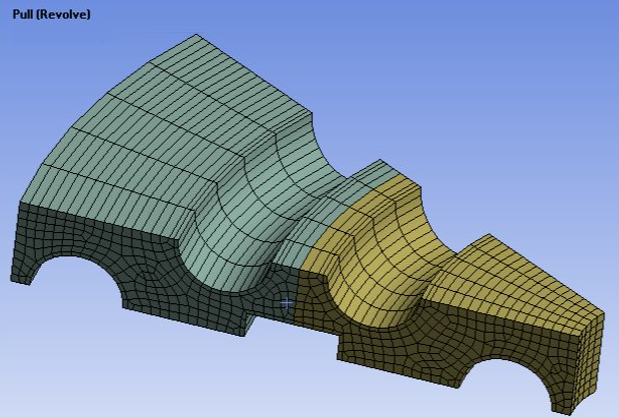 Revolution Angle: Allows you to specify angle of revolution for the solid elements. Here, Pull (Revolve) automatically merges the nodes of the first layer and last layer for 360 degrees revolution. Revolution Angle allows only positive values.