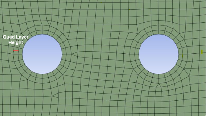 Quad Layer control allows you to create layer of quadrilateral elements around holes and edges. Quad Layer control enables you to scope the edge loops or edge based named selections. You must use Automatic (PrimeMesh) method to scope the parent bodies of edges used in Quad Layer control.