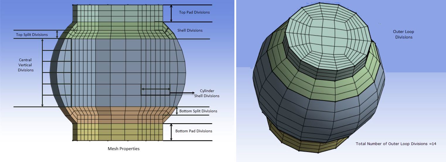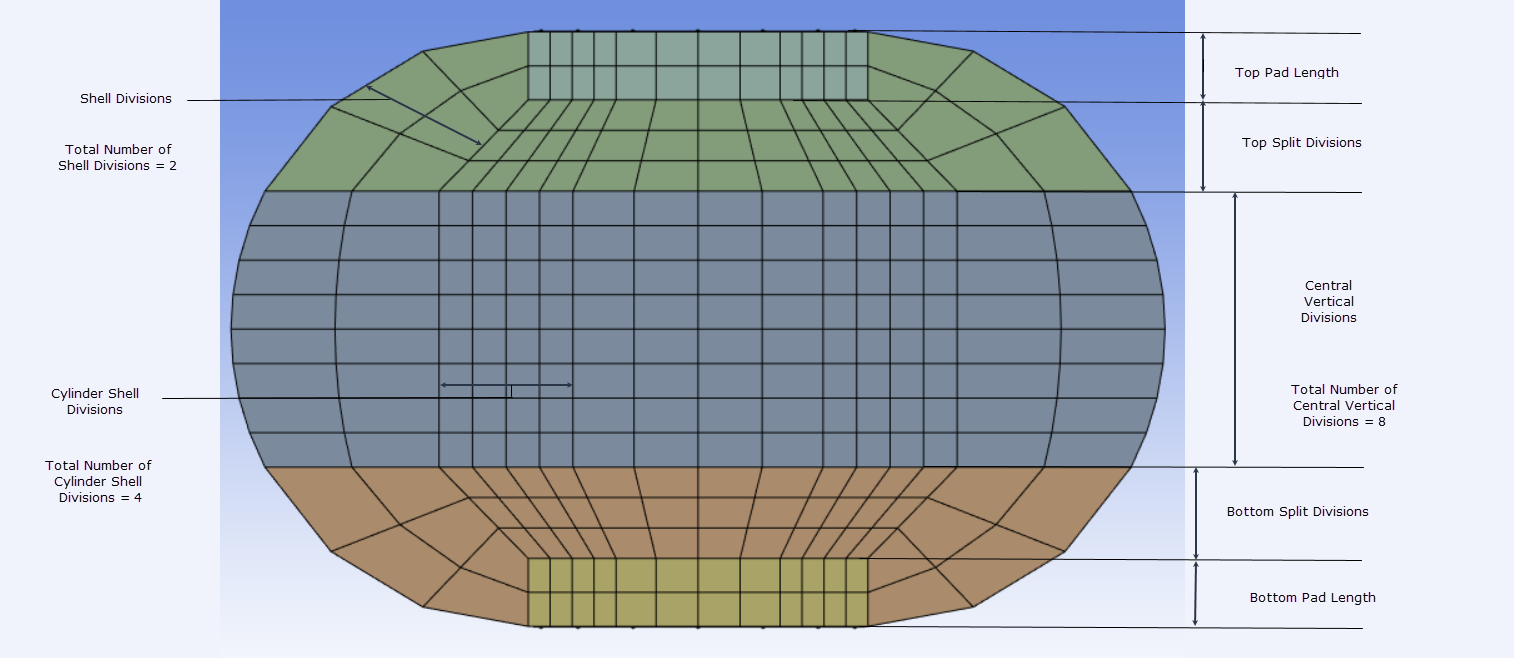 Shell Divisions. Note: For Sphere, if the top pad and bottom pad lengths are negative, Shell Divisions controls the number of divisions in the top and bottom pad. For Torus, controls the number of divisions in the top and bottom pads and are always created as internal pads.