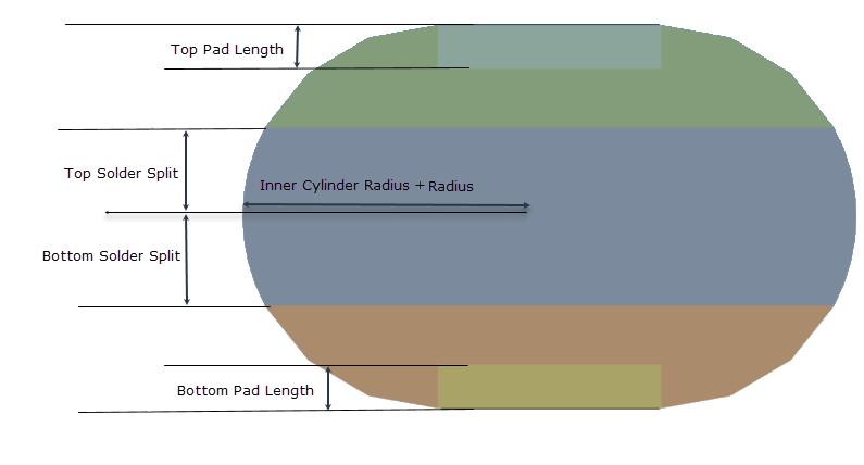 Top Pad Length.Bottom Pad Length: Allows you to specify the length of the solder ball bottom pad. For Sphere, a positive value creates an external pad below the bottom split, and a negative value creates an internal pad above the bottom split. For Torus, the absolute value is used and always creates an internal pad. The default value is 0.0625 mm. You can click