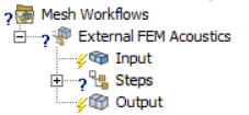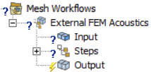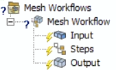 When your Mesh Workflows are inserted from a predefined workflow type or have an under-defined input, the Mesh Workflows and the Input objects are preceded by a question mark to indicate the mesh workflow is under-defined and requires input data: