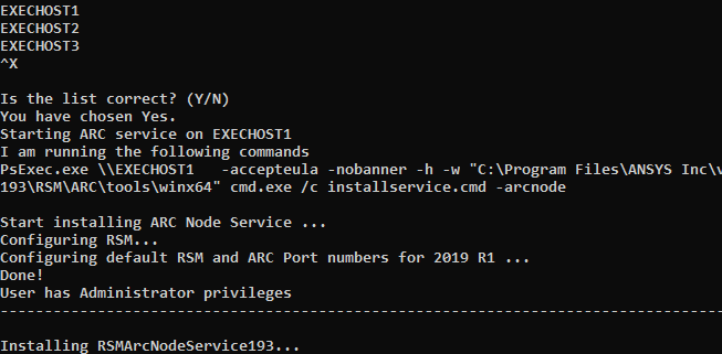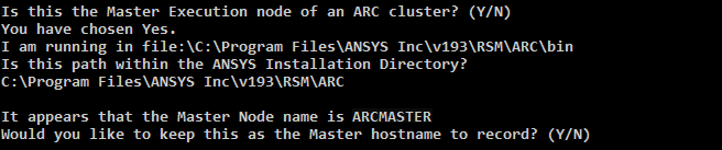 Type y to confirm that Ansys software is uniformly installed on the Master node and all Execution nodes.
