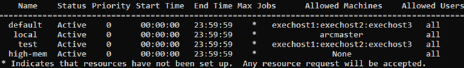 Each queue will be created and enabled, and the appropriate nodes will be assigned to each queue according to the responses that you entered: