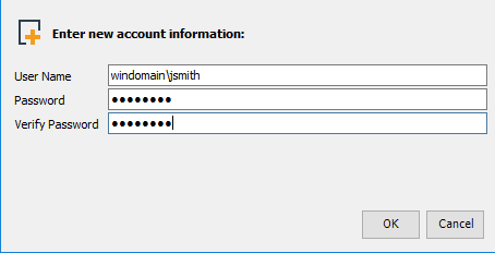 on the toolbar, or right-click and select .In the Adding Account dialog box, specify the user name and password that will be used to submit jobs the HPC resource, then verify the password. If jobs will be submitted to a Windows machine, ensure that you include the Windows domain when specifying the user name.
