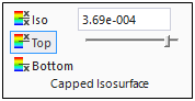 The value for the isosurface is set by the slider or entry field (specified result value). The slider represents the range from minimum to maximum for the selected result. Slider setting changes require you to click in the Geometry window to redisplay the result values in the legend.