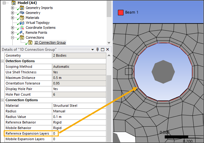 Radius Factor is greater than 1). With a 1D Connection Group, the scoped entities are either