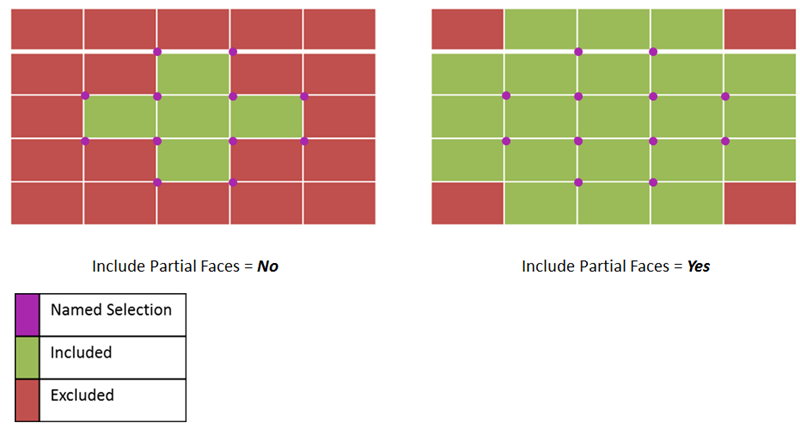 For the element edges/faces whose corner nodes are only partially defined the filter, that is, the faces/edges which have some corner nodes included in the filter, but not all the Include Partial Faces/Edges property can be used to include or exclude the element faces/edges from the scoping.