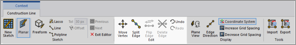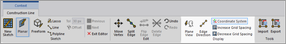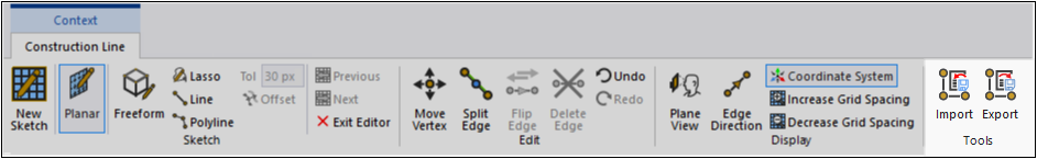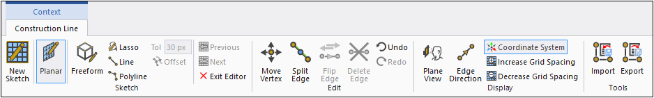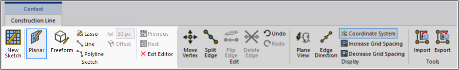 The Exit Editor option deactivates all Construction Line Context tab options.