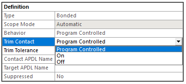 You can choose to turn contact trimming on, off, or have the application control when trimming is performed, Program Controlled, which is the default setting. See Trim Contact for details.