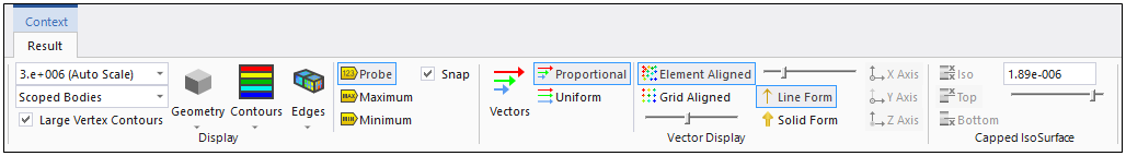 Using the Vector Display group, you can display results as vectors. This group includes various options for controlling the display of the vectors.