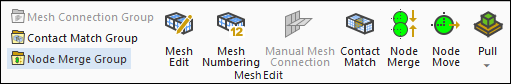 The Mesh Edit Context tab enables you to modify and create Mesh Connection objects that enable you to join the meshes of topologically disconnected surface bodies and also move individual nodes on the mesh. The Mesh edit Context tab includes the following options: