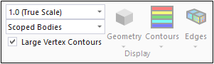 The Large Vertex Contours check box option is used for node-based result scoping. It toggles the size of the displayed dots that represent the results at the underlying mesh nodes on and off.