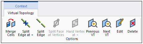 Previous VT/Next VT | Enable you to cycle through virtual topology entities in the sequence in which they were created. If any virtual topologies are deleted or merged, the sequence is adjusted automatically. See Cycling Through Virtual Entities in the Geometry Window. |