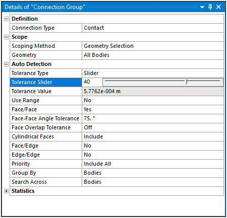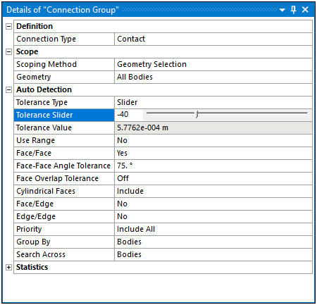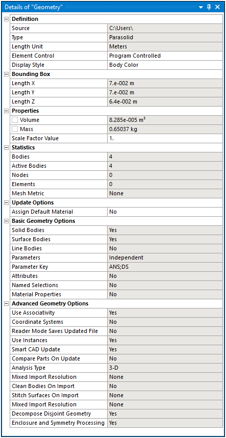 You use the Details pane to specify the attributes of an object selected in the Outline. The pane provides categorized groups of properties for the selected object. You define the various properties in different ways. Some require you to make a selection in the Geometry window, others require a value, and so on. This is the primary entry point to properly define the environmental conditions of your simulation.