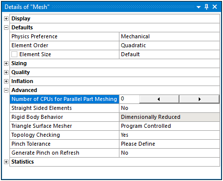When active, the title of the pane displays the message “Details view Update Paused.” You must change the setting in the Options dialog to deactivate the setting. The setting for this preference carries over to future Mechanical session if not changed.