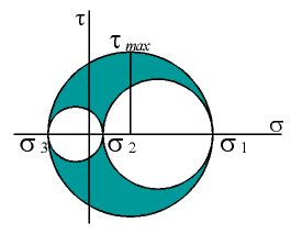 The maximum shear stress τmax, also referred to as the maximum shear stress, is found by plotting Mohr's circles using the principal stresses: