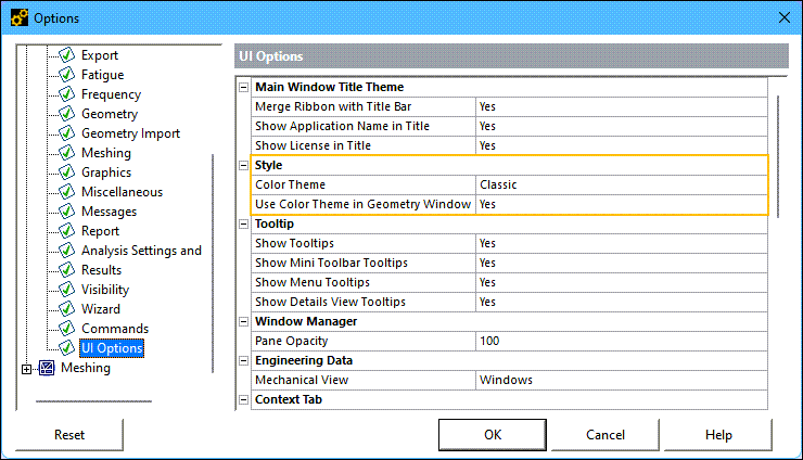 Use this preference to select the background color of the Geometry window. If set to (default), the application uses the background color of the selected Color Theme (light, dark, classic). Set to , Mechanical uses the background colors selected in Workbench ( > > Appearance).